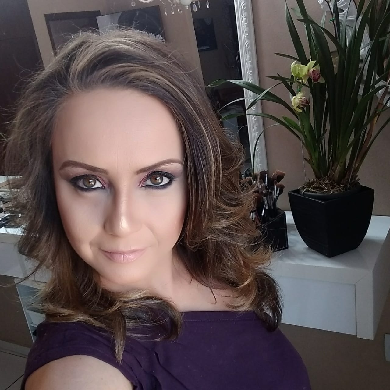 Com uma escova super caprichada valorizando as mechas claras do cabelo e também uma make intensa com efeito Natural.